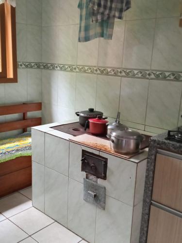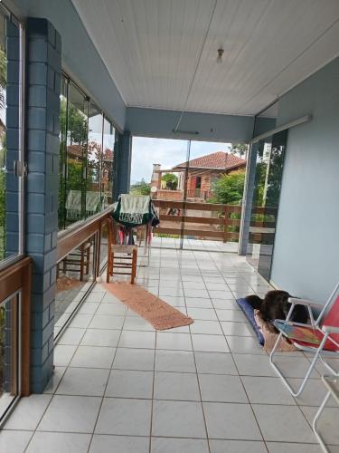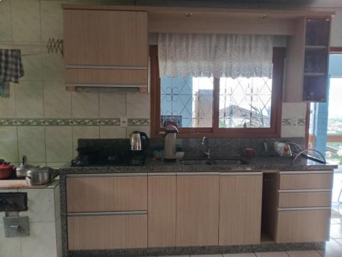 parte superior, com 121 m , contendo 3 dormitórios, banheiro sala, cozinha com moveis sob medida , fogão campeiro, sacada fechada com vidro e churrasqueira.