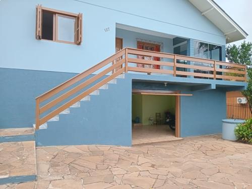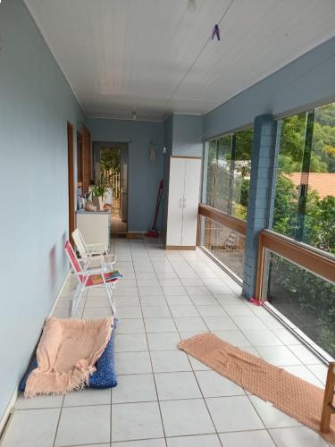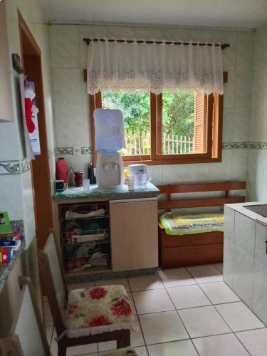 parte superior, com 121 m , contendo 3 dormitórios, banheiro sala, cozinha com moveis sob medida , fogão campeiro, sacada fechada com vidro e churrasqueira.