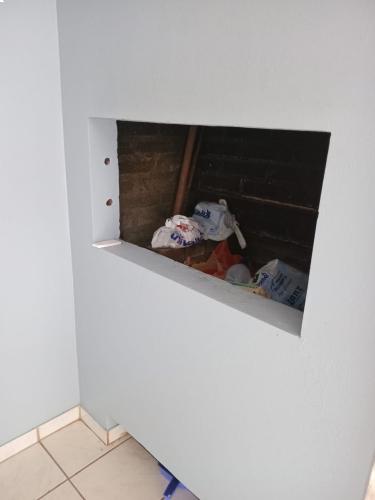 parte inferior, com garagem para dois carros, 2 quartos,1 banheiro.